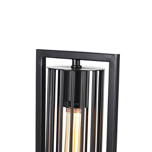 Moderne Vloerlamp Zwart met spijlen in de kap rond